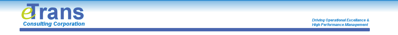 eTrans Consulting Corporation, led by a group of highly experienced and successful business professionals, is a business consulting and software engineering company based out of Atlanta, Georgia, with focus on servicing clients seeking to drive business performance in a tangible and sustainable manner. We offer our clients expertise in business organization and management, as well as powerful systemic solutions which allow clients to make fundamental changes to their organizational structures and business management approach. We specialize in process optimization and re-engineering that enables greater transparency and control over business costs, operating risk and people.